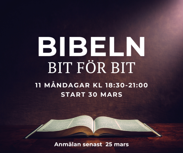 En kurs på 11 veckor där du får en överblick över Bibeln och Guds stora berättelse. Varje kväll blir det två undervisningspass, fika och samtal i smågrupp. Som lärare har vi både lokala och inresta talare.